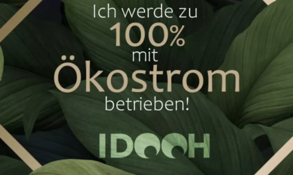 Das IDOOH hebt hervor, dass Digital-out-of-Home laut dem Green GRP-Rechner der Agentur Mediaplus von allen Medien den niedrigsten CO2-Fußabdruck hinterlässt. Der Rechner vergleicht die CO2-Emissionen je 1.000 Kontakte in Gramm, unter der Verwendung von Ökostrom. Als Vergleich werden Zeitschriften und Zeitungen herangezogen, die auf einen Wert von 10.835 beziehungsweise 8.985 Gramm (im nordischen Format) kommen. Lineares TV liegt bei 1.145 Gramm. Bei DooH sind es 6 Gramm, wenn die Fläche kleiner als 2 Quadratmeter ist, und 5 Gramm, wenn sie kleiner als 9 Quadratmeter ist.