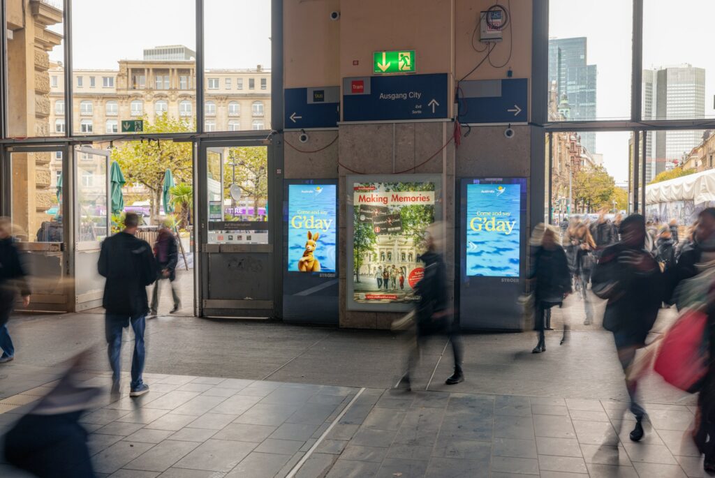 Ein besonderes Highlight: das DOOH Connected Ad mit Ping-Pong-Effekt umgesetzt auf den PV-Station Screens unseres Partners Ströer. Ruby hüpft dabei von einer Stele zur nächsten und sorgt für einen innovativen, aufmerksamkeitsstarken Hingucker.